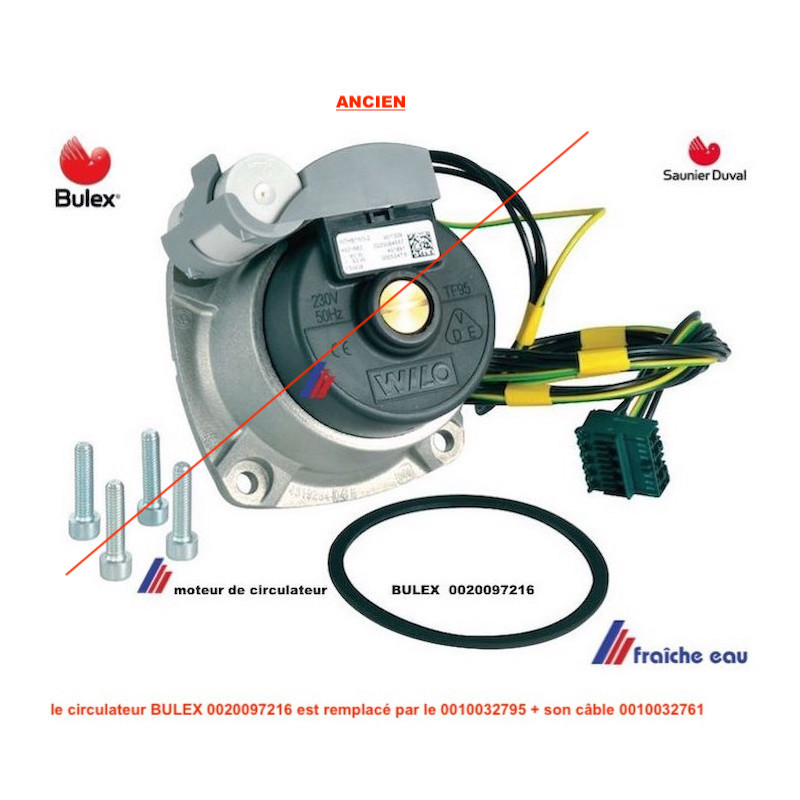 circulateur électronique BULEX 0020097216 pour chaudière THEMA CONDENS, SAUNIER DUVAL remplacé par le 0010032795 + câble