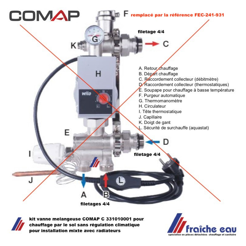 melangeur COMAP pour chauffage par le sol avec circulateur WILO YONOS 15/6, utilisation mixte avec installation de radiateurs