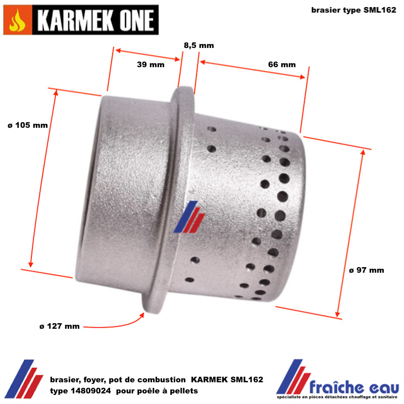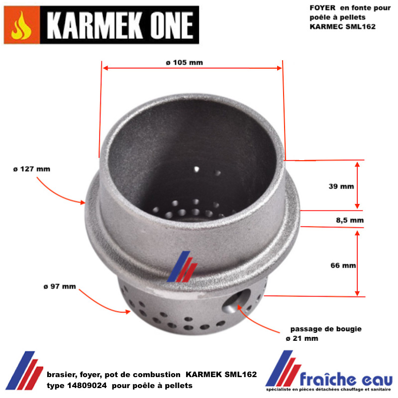 creuset, foyer, pot de combustion en fonte brasier pour poêle à pellets KARMEK SML162 type 14809024