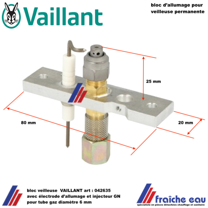 bloc veilleuse VAILLANT art : 042635 avec électrode d'allumage pour montage avec thermocouple , veilleuse permanente