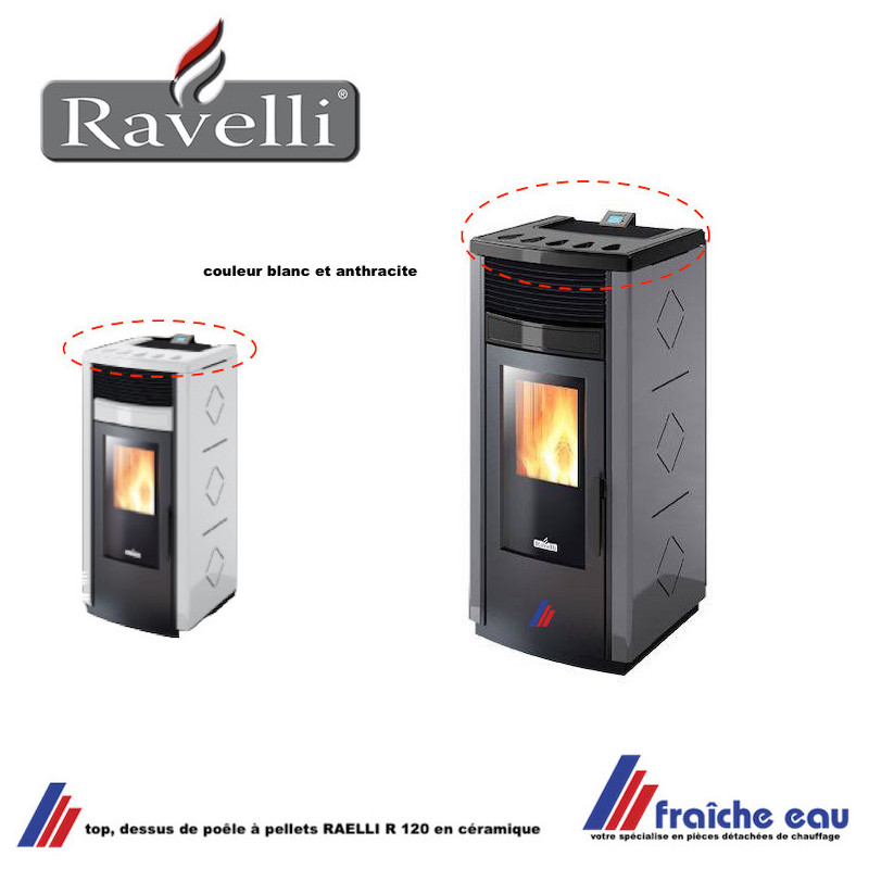 dessus de poêle à pellets RAVELLI R 120 , top en céramique coloris blanc et anthracite à préciser : stock limité