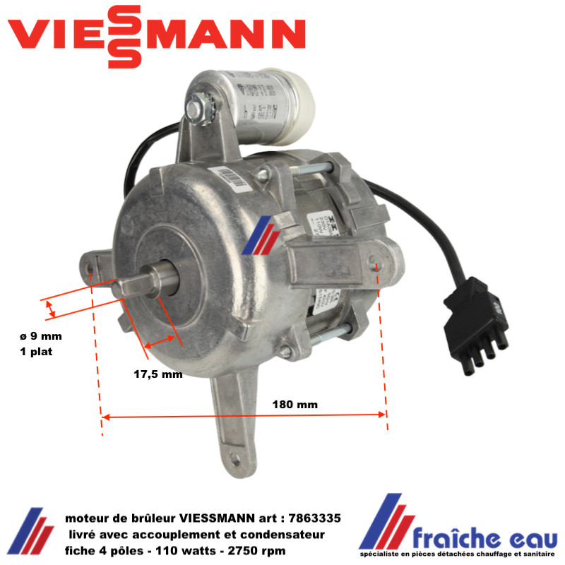 moteur de brûleur VIESSMANN art: 7836335 puissance 110 watts avec fiche 4 pôles et condensateur livré avec accouplement