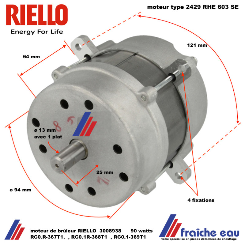 moteur de brûleur à mazout ,RIELLO sans condensateur 3008938 -90 watts , moteur de remplacement brûleur